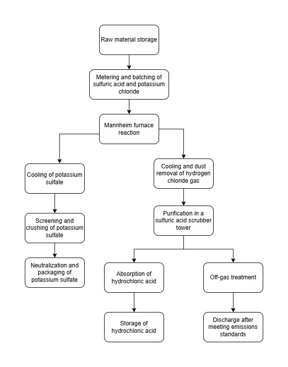 Potassium sulfate fertilizer production line uses the Mannheim process, a widely used method for producing high-quality potassium sulfate. As a premium, chlorine-free potash fertilizer, potassium sulfate plays a key role in improving crop quality and enhancing a plant's resistance to stress. The production line uses potassium chloride and concentrated sulfuric acid as primary raw materials to efficiently produce potassium sulfate products that meet agricultural needs.